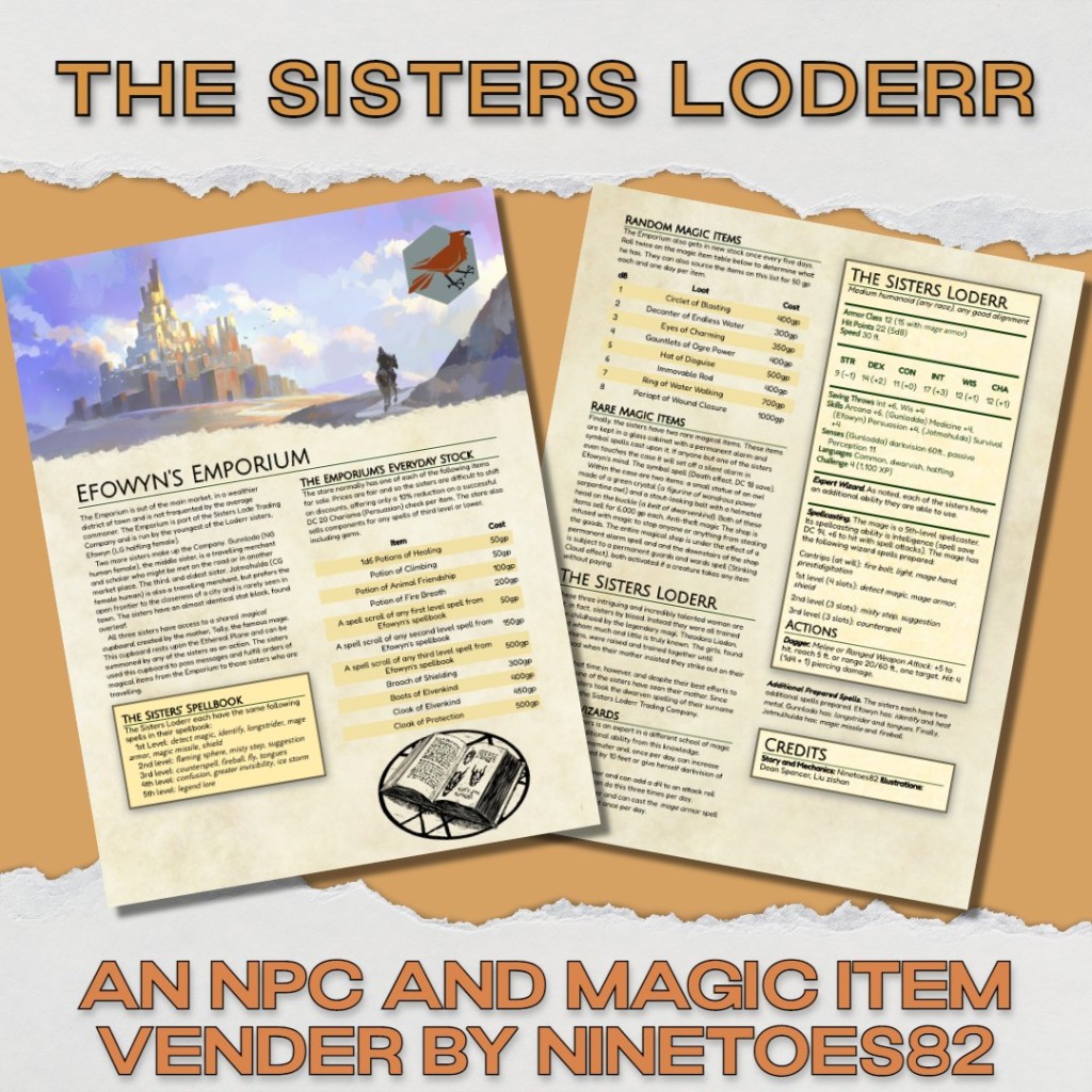 The supplement includes a stock of magic items, a rollable table for additional items and a stat block for the sisters.