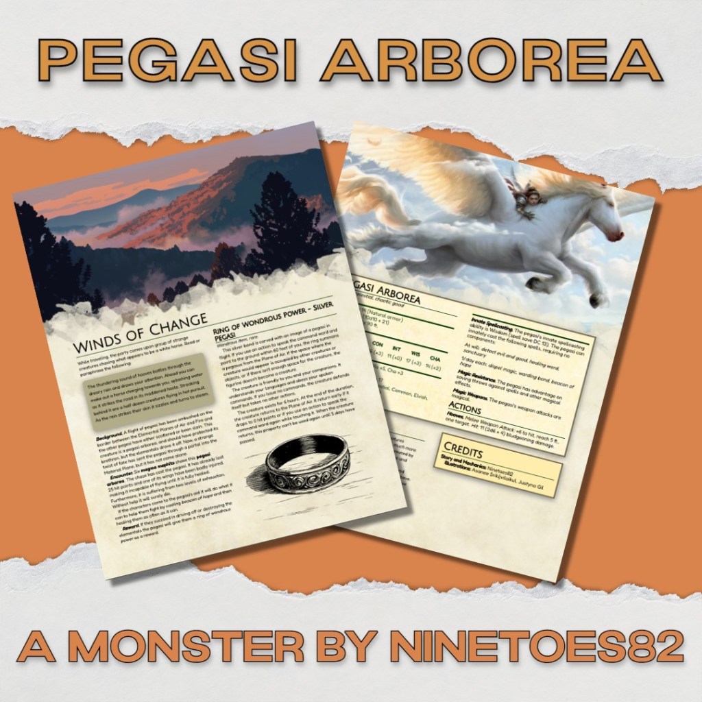 Pegasi Arborea are true celestial creatures, created by the gods of the Elemental Plane of Air to both sire and protect the noble pegasus.