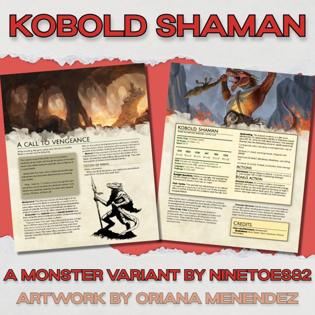 First of the Tribe. Kobold Shaman are powerful spellcasters. They are the spiritual leaders of tribes and shrines and often hold positions of influence in their communities. They might be leaders of religious sects hidden in the shadows of the dark below, overseeing depraved rites.